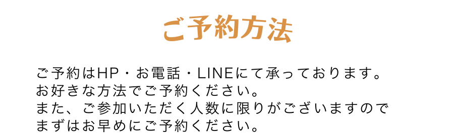 下記バナーをTAPしお友だち追加後、「LINEから予約」をTAPしてメッセージをお送りください
