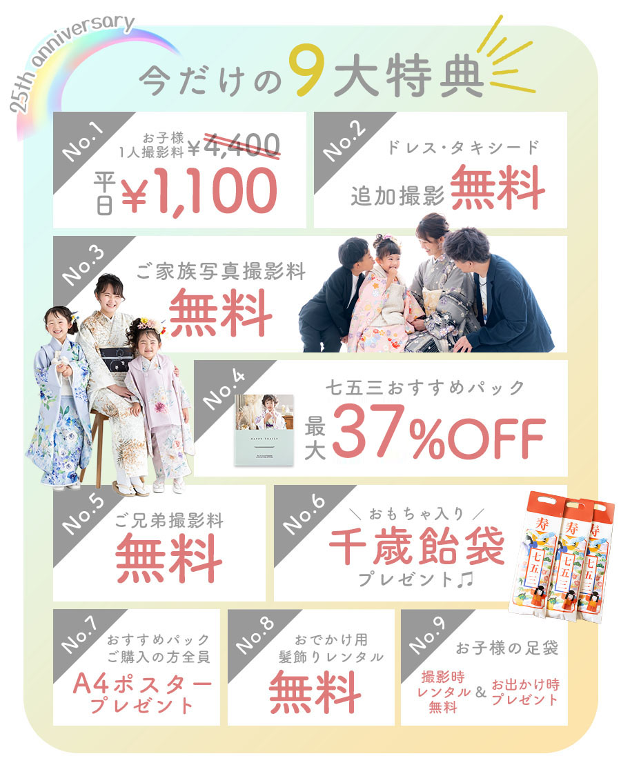 3歳・5歳・7歳、それぞれの節目を特別に彩る一着をお選びください。