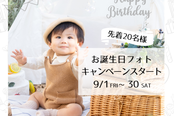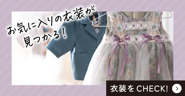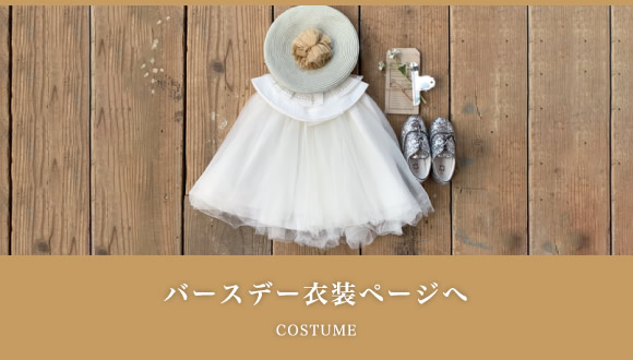 生後6ヶ月~1歳前後までの撮影衣装を無料でご利用いただけます。(私服と衣装の両方で撮影可能です)バースディフォトにぴったりの小物もキュートです。