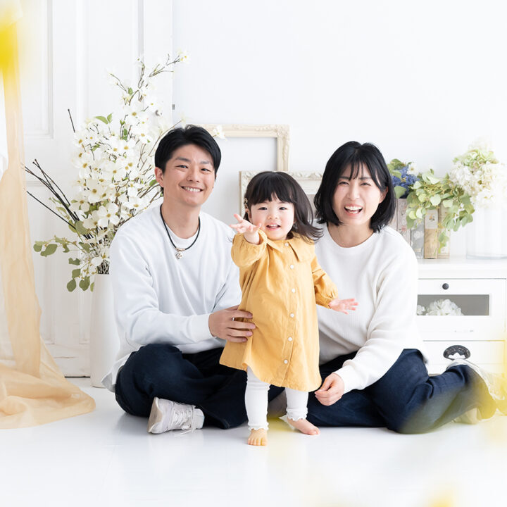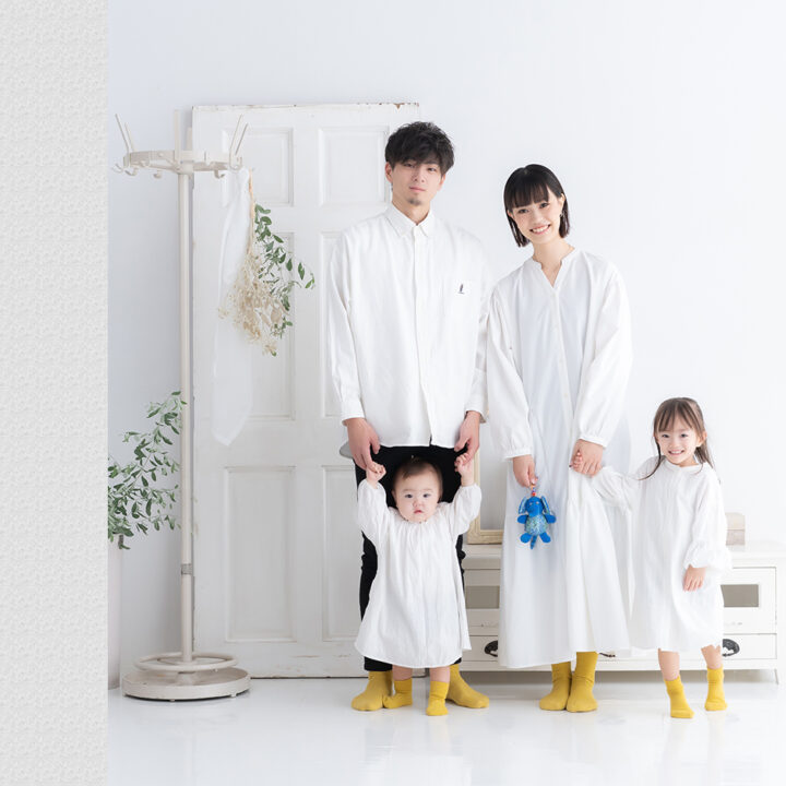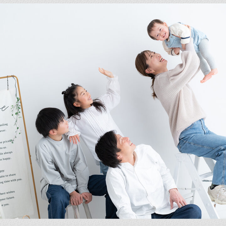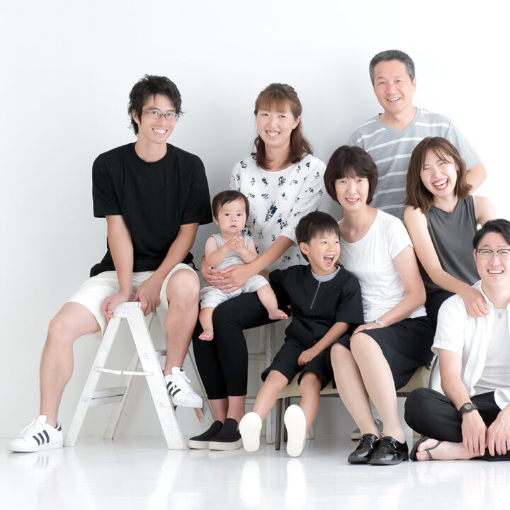 10名様くらいまでのご家族写真は固すぎない雰囲気の家族写真も人気。ご家族の記念日に。