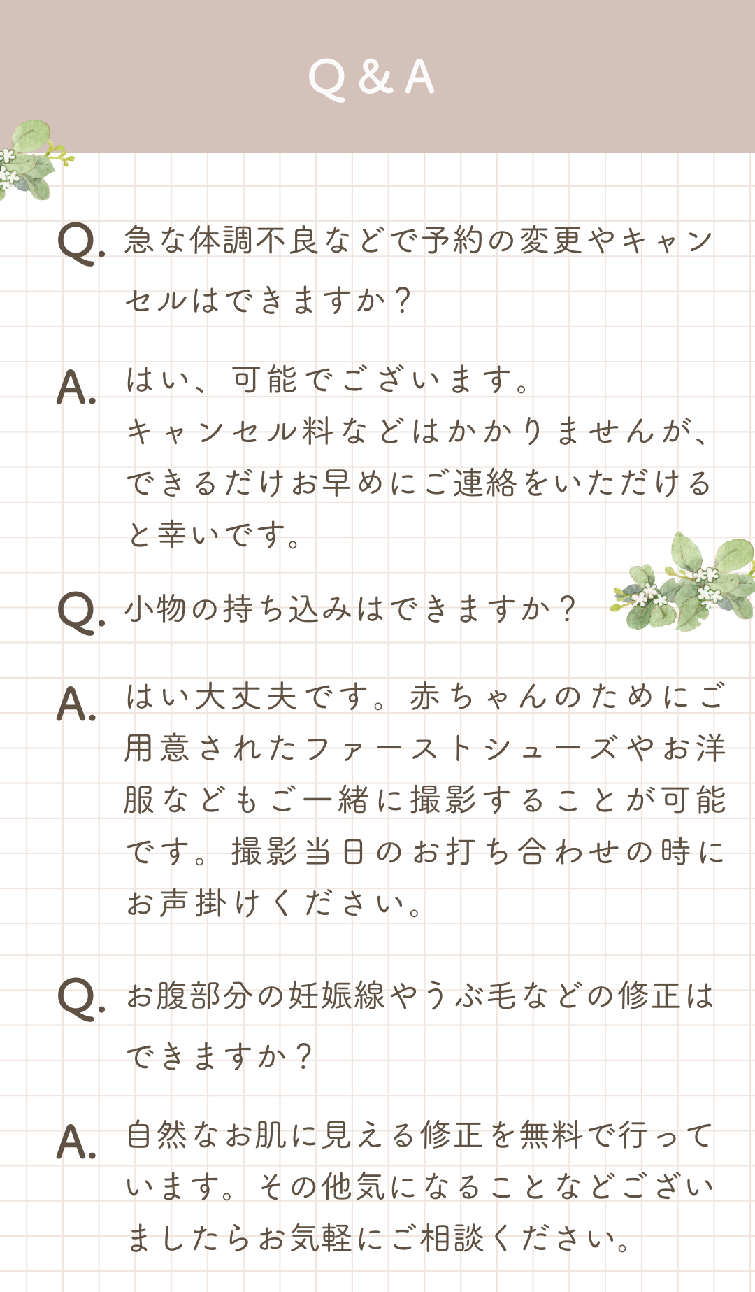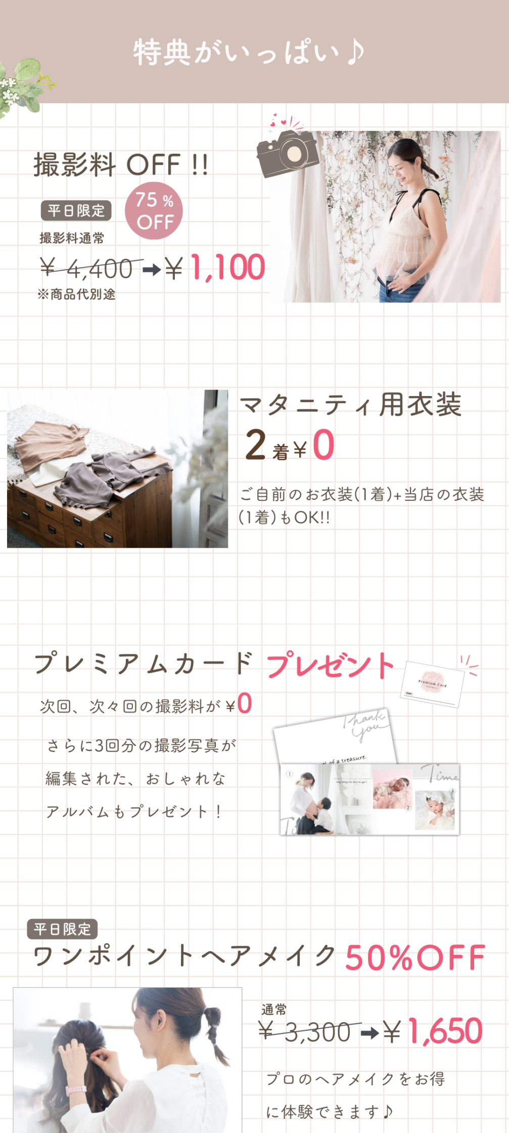 ・メイクはしてきた状態でご来店ください。撮影に合うよう色味の調整をさせていただきます。