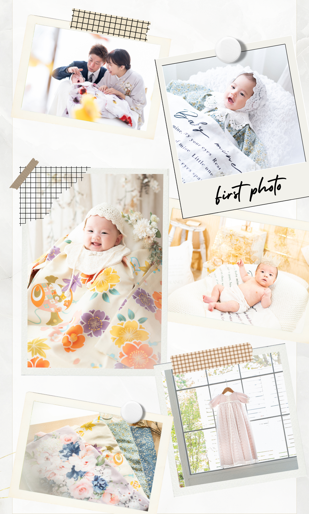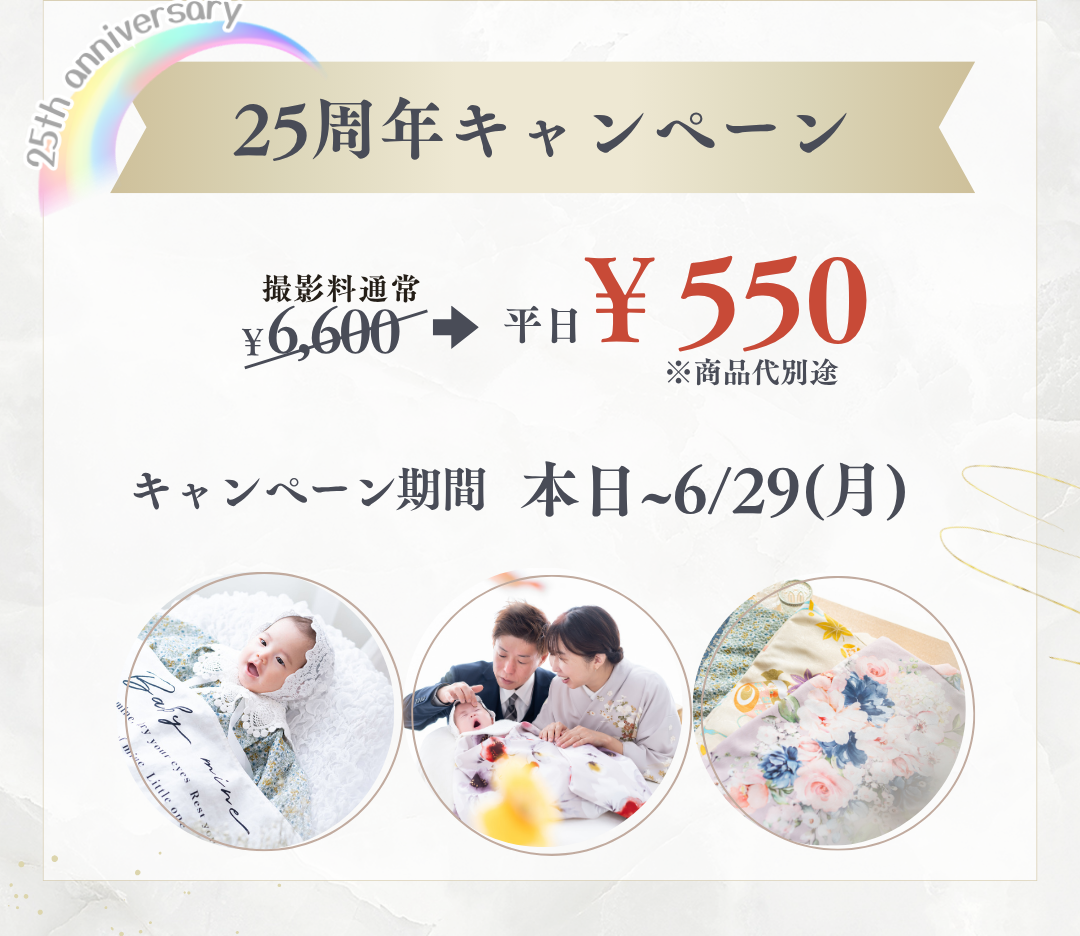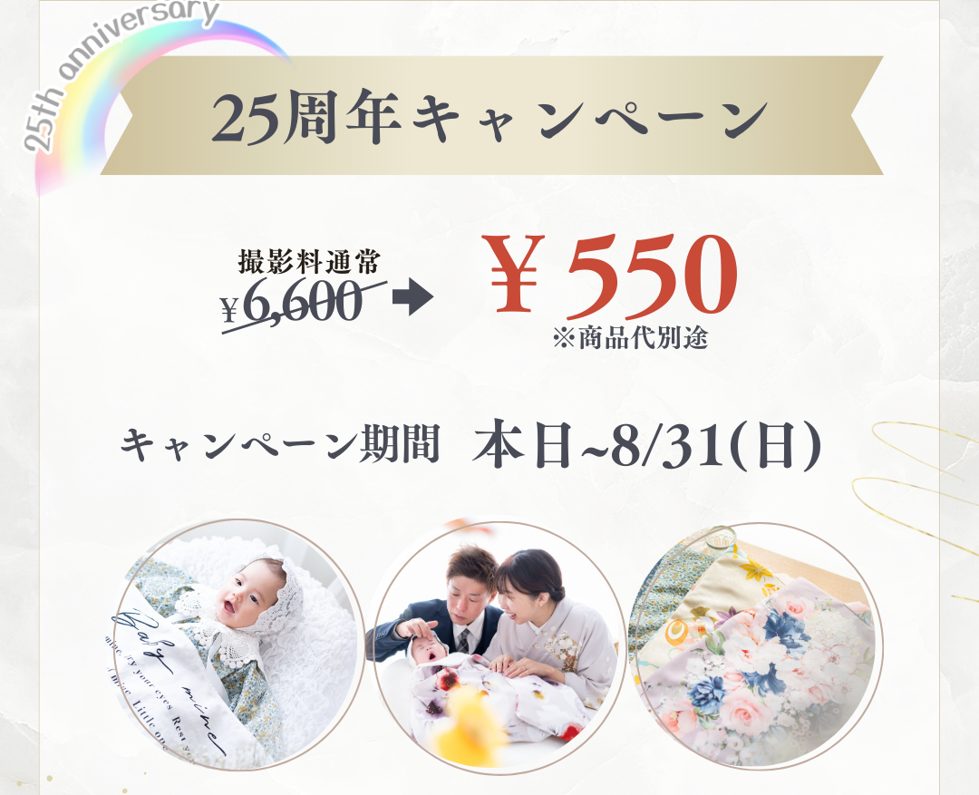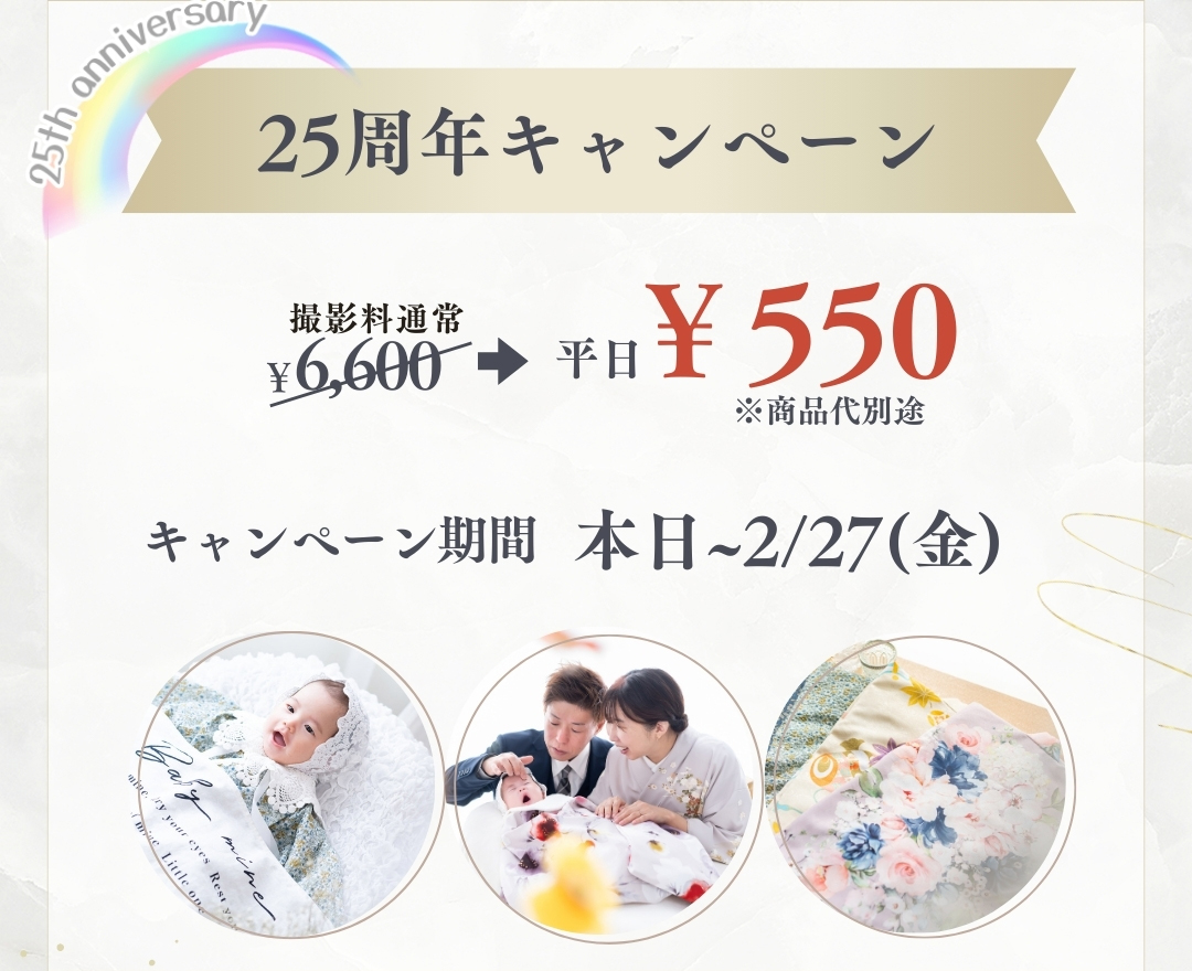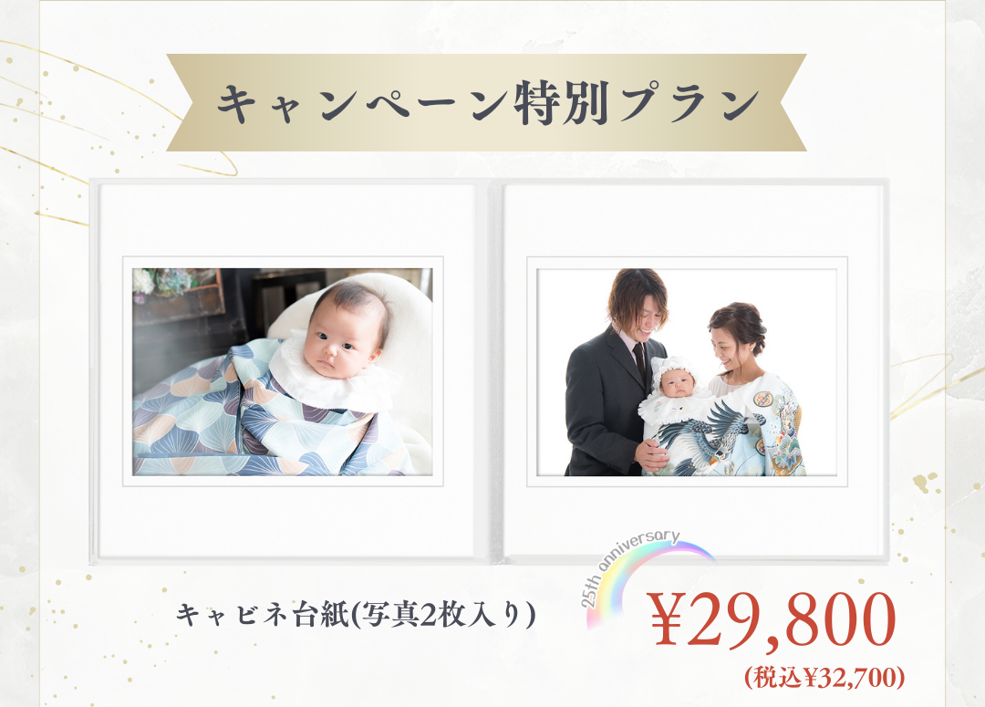 赤ちゃんの「はじめて」の記念写真を、可愛らしい晴れ着とプロカメラマンによる丁寧な撮影で、かけがえのない一枚に残しませんか?