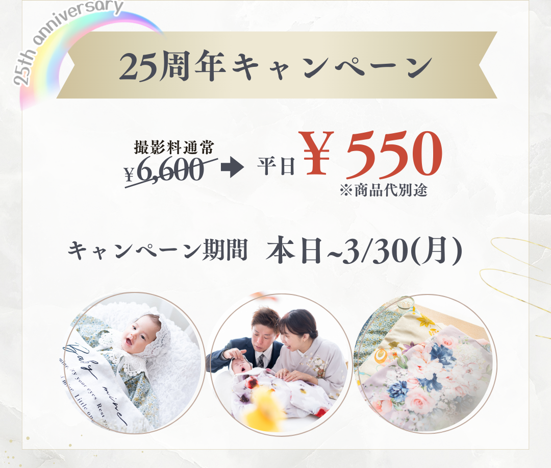 ありがとうの感謝をこめて「お宮参り撮影料」を特別価格でご案内いたします!