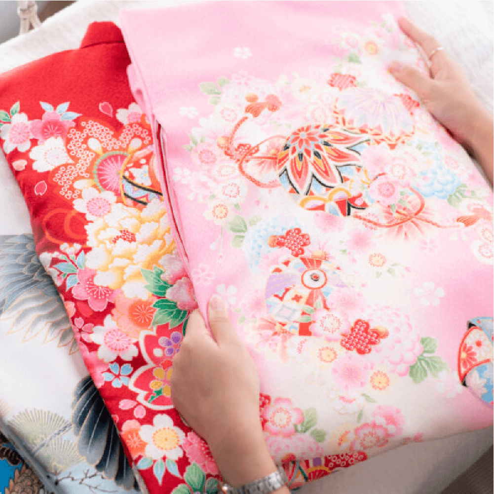 赤ちゃんの晴れ着は、女の子/赤色・男の子/黒色でご用意しております。ご希望の場合は事前にお電話で・撮影日・お名前・(性別)などをお伝えいただきご予約ください。