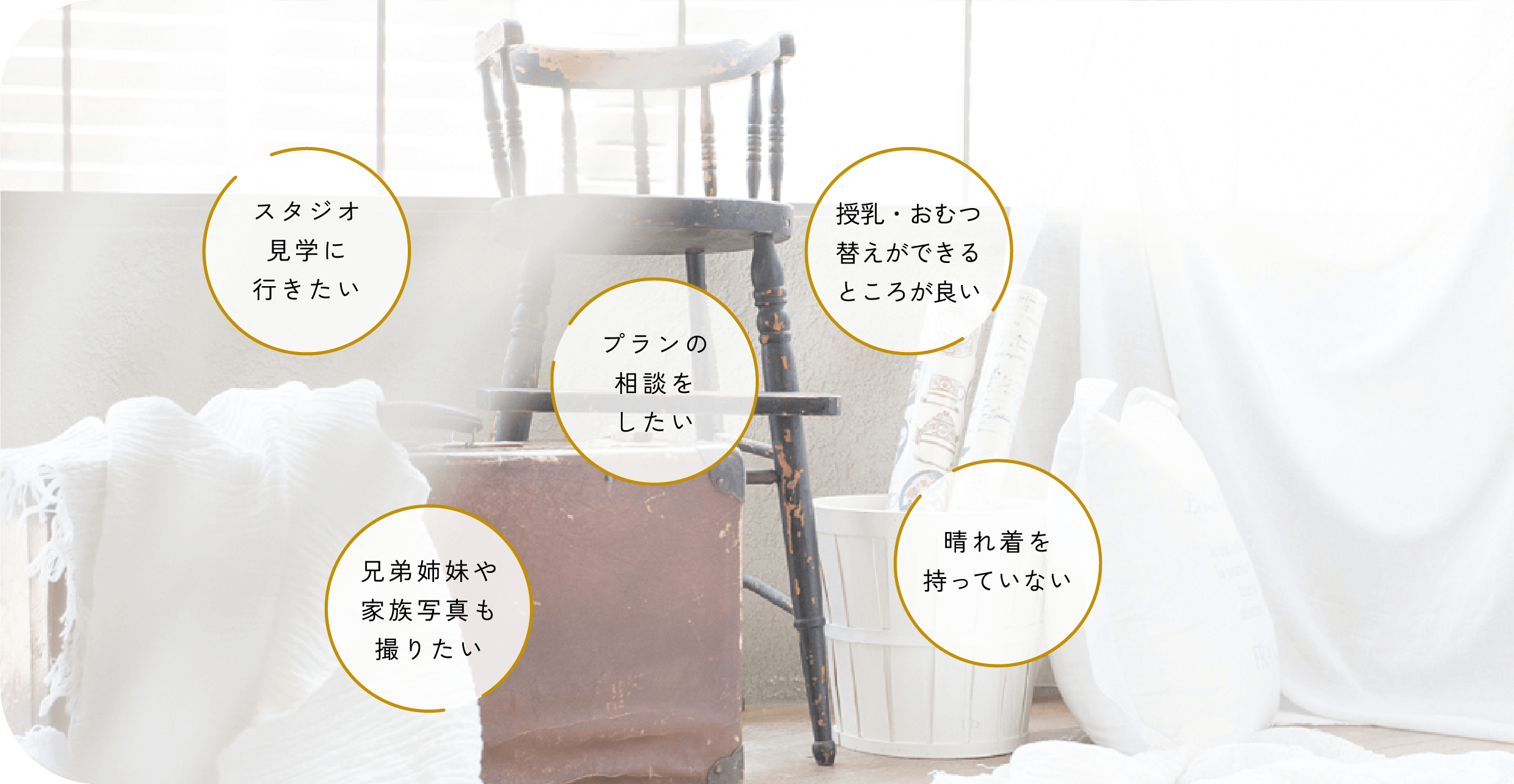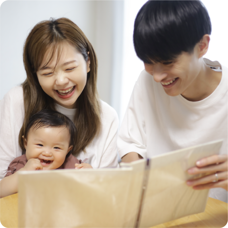 上のお子様がまだ小さな場合は、ご家族写真やご兄弟ショットなどでお子様の目線をとれない場合がございますが、できる限り笑顔のお写真が撮影できるよう、お子様と遊びながらすすめています。