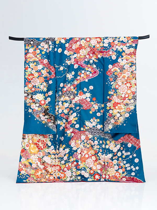 振袖 青 紺 濃紺 赤 花柄 大人っぽい 古典