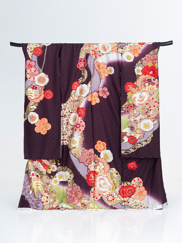 振袖 黒 紫 花柄 華やか 大人っぽい 古典