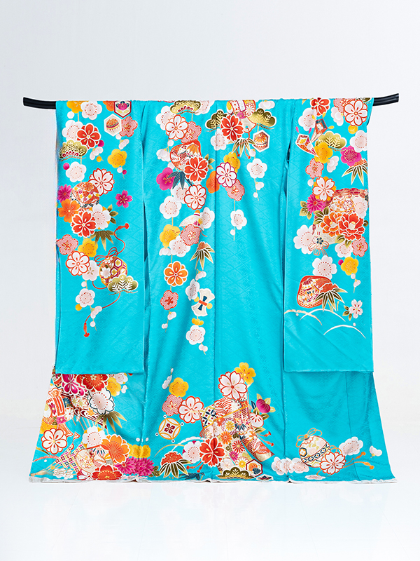 振袖 青 水色 明るい 上品 シンプル 古典