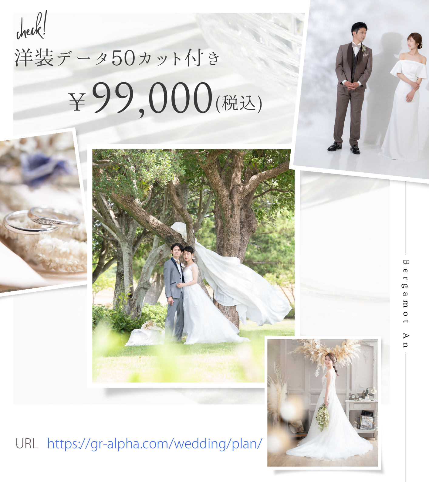 衣装や商品も選べるプランだから、わかりやすくてこだわりのアイテムが満載。宝物のようなウェディングフォトをふたりらしく。