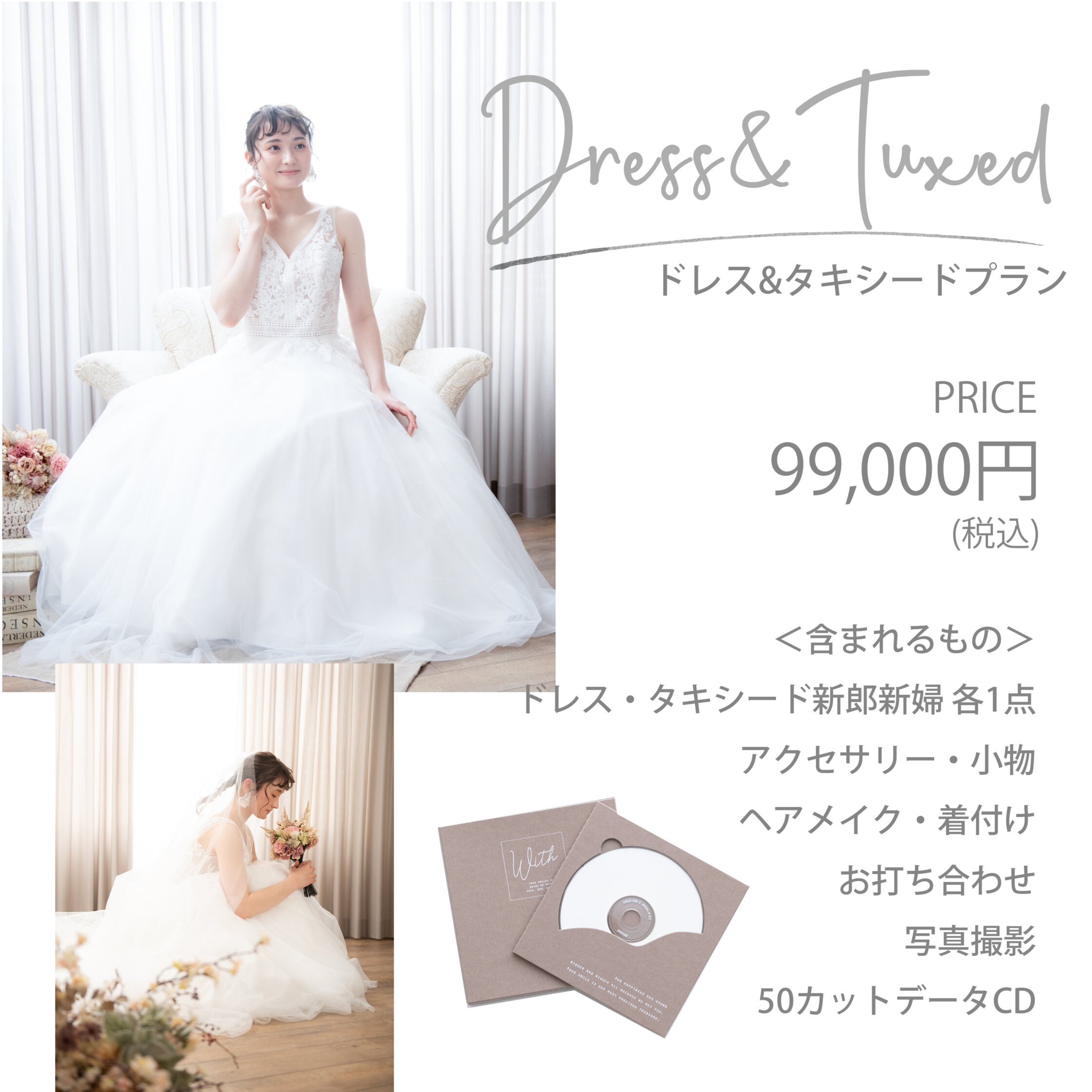 さらに必要なアイテムとヘアメイク、約100カットの撮影データまで全て入ったお得で人気ワンパックプラン』です