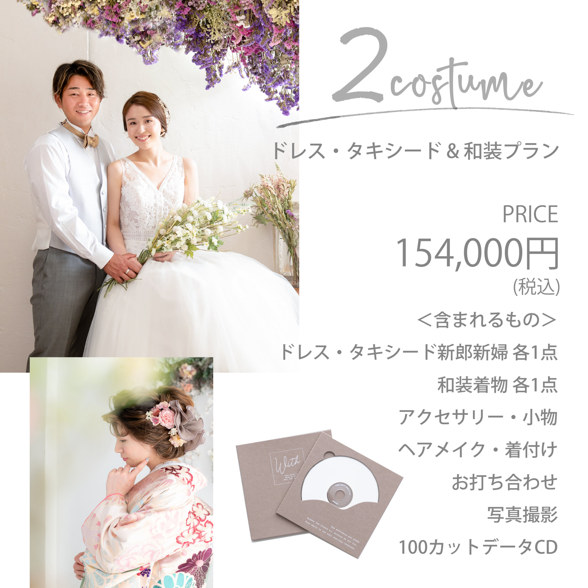 必要なアイテムやヘアメイク、約50カットの撮影データまで全て入ったお得で人気ワンパックプラン』